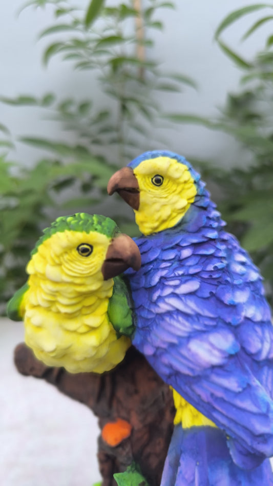 11 Inch Colorful Double Parrot Showpiece | Resin Love Birds Statue for Home Decor & Gifting