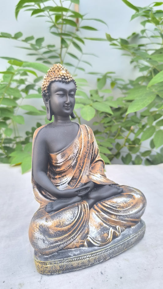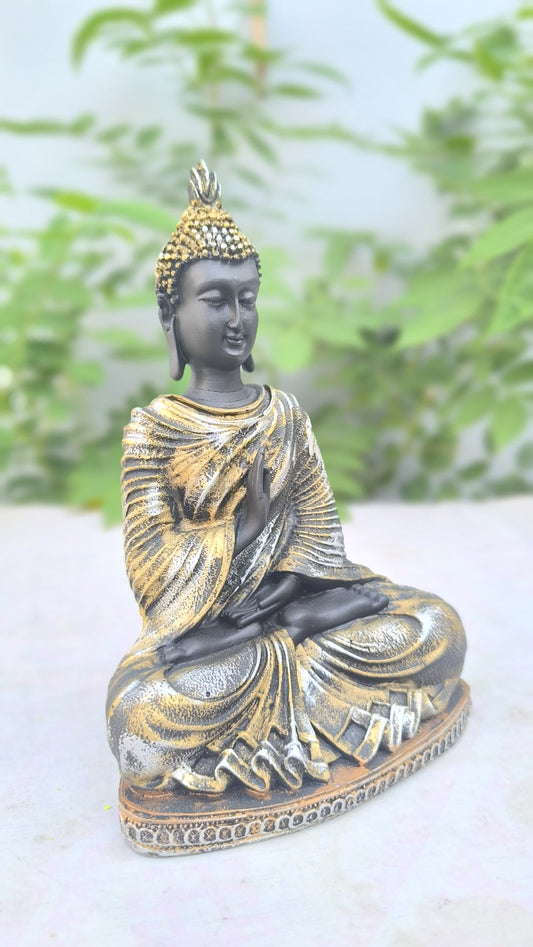 10 Inch Antique Buddha Statue | Resin Meditating Idol | Golden Black Buddha for Home & Office Décor