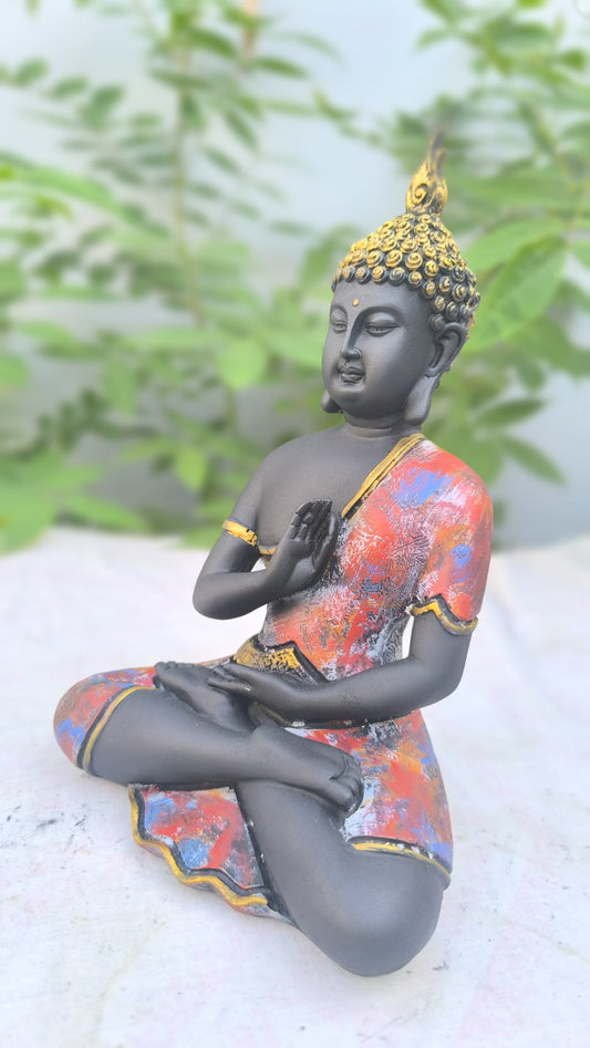 10 Inch Colorful Buddha Statue | Meditation Pose | Decorative Resin Idol for Home & Office