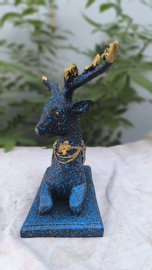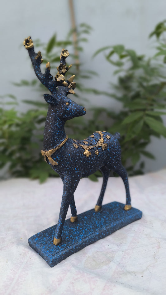 13 Inch Blue Golden Royal Deer Showpiece | Elegant Resin Animal Figurine for Home Decor, Tabletop & Gifting