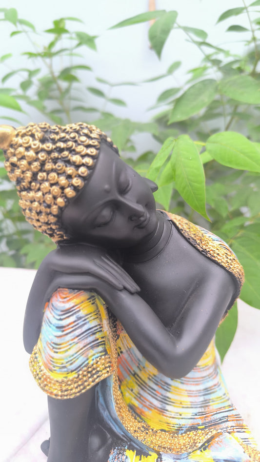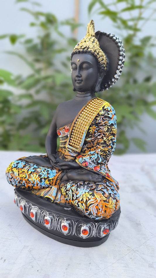 12 Inch Designer Black Buddha Idol | Multicolor Decorative Gautam Buddha Statue for Home & Office Décor
