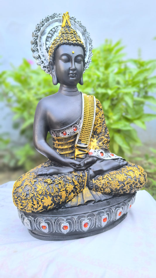 18 Inch Decorative Resin Buddha Statue | Black & Golden Meditating Buddha Murti for Home Decor & Gift
