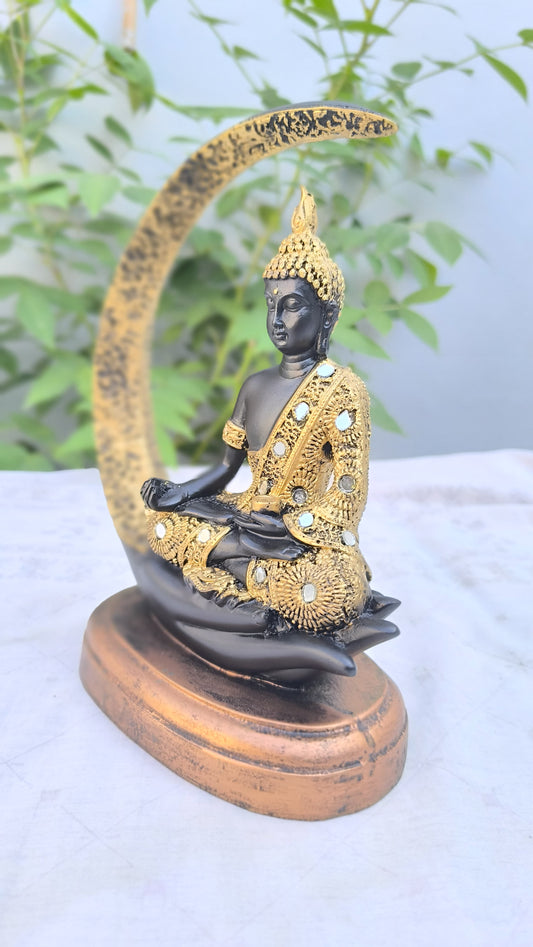 10 Inch Resin Ardh Chand Buddha Idol | Crescent Moon Buddha Statue for Home Decor, Meditation & Gift | Black & Golden Buddha Showpiece