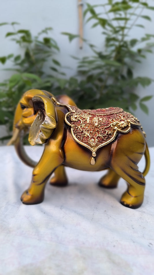 12 Inch Decorative Golden Elephant Showpiece | Resin Elephant Idol for Home Decor & Vastu