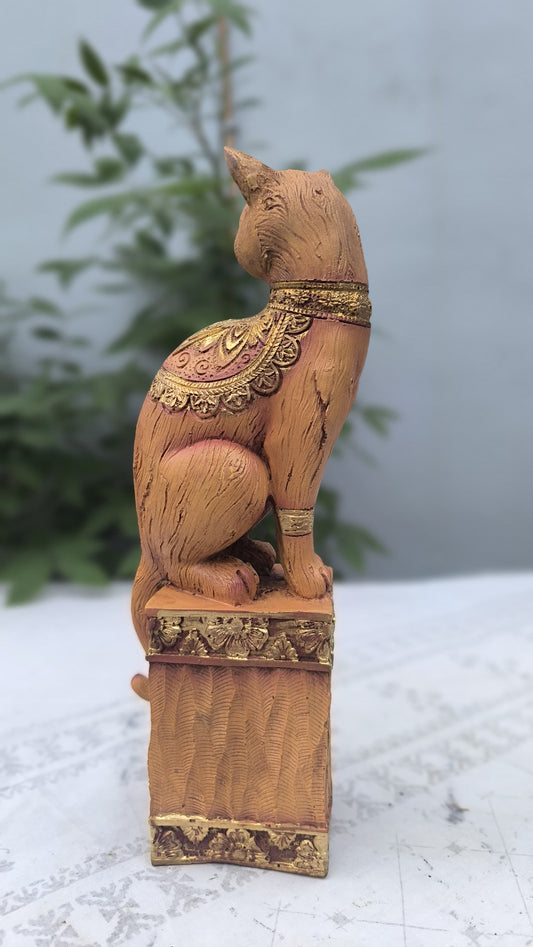 13 Inch Antique Cat Showpiece Set | Decorative Resin Cats on Pedestal for Home Décor