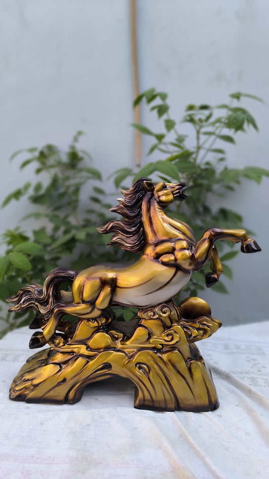 16 Inch Golden Horse Statue for Home Decor | Running Horse Showpiece for Wealth, Success & Feng Shui