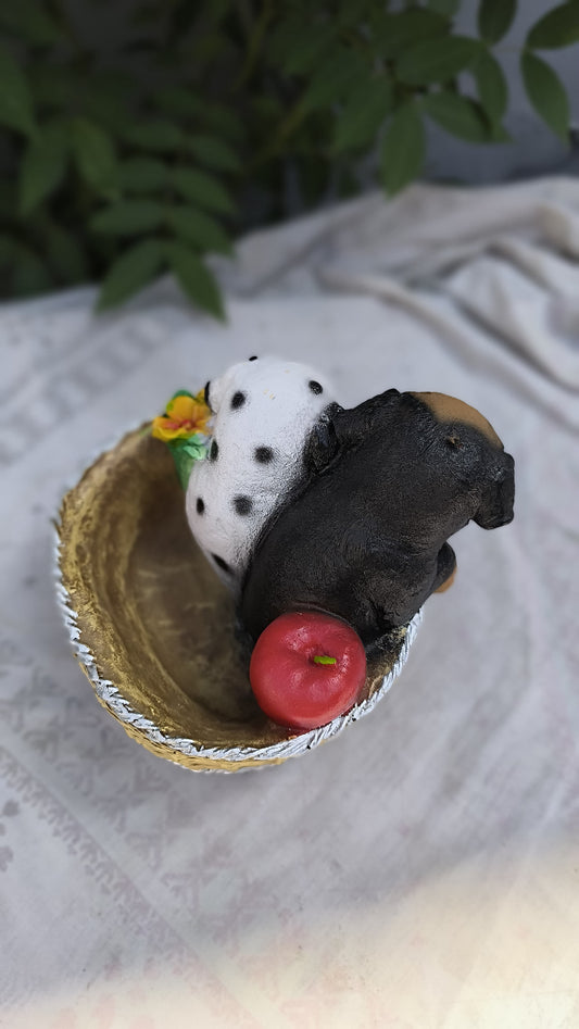 7 Inch Resin Cute 2 Puppy in Basket Showpiece | Decorative Dog Statue for Home Decor, Kids Room & Gift | Adorable Animal Figurine"