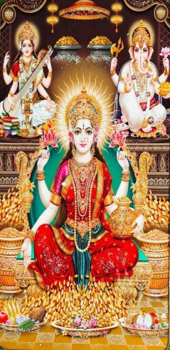 Blessings Crystal Poster - Lakshmi, Saraswati, Ganesh, Kuber in Golden-Brown Acrylic Frame