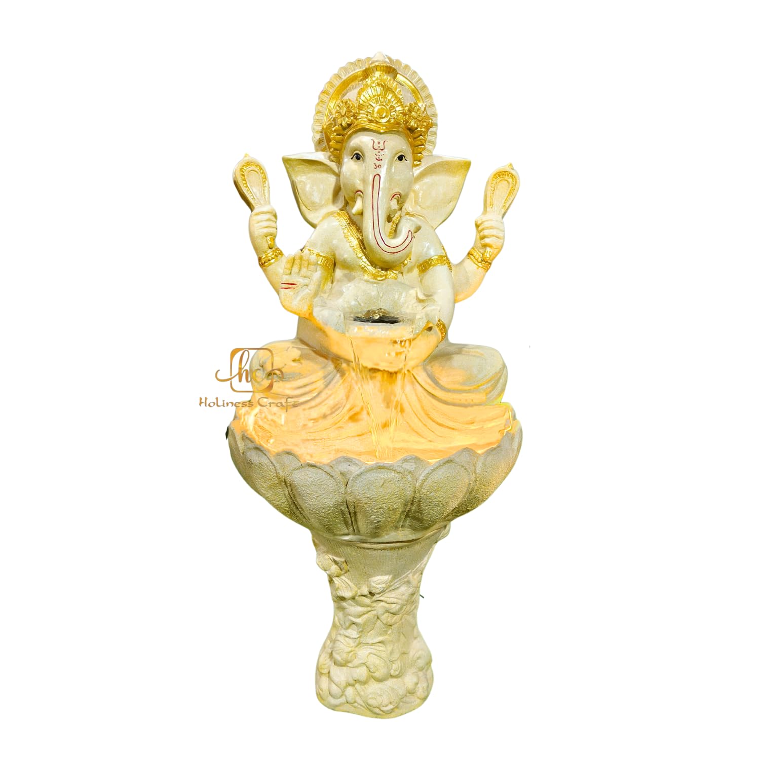 Trisaini Craft Lotus Ganesha Water Fountain with Stand for Indoor Outdoor Home Decor Farmhouse Decor Garden Patio Deck Porch Gift Gifting with LED Lights Water Pump